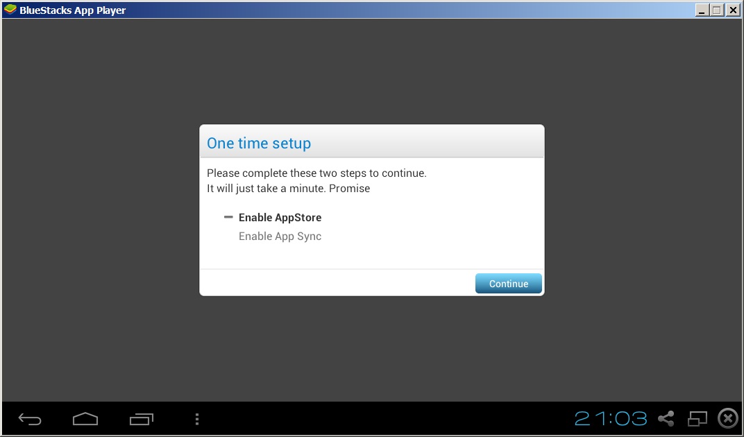 Теперь запустите настройку синхронизации приложений. Нажмите на кнопку «Continue».