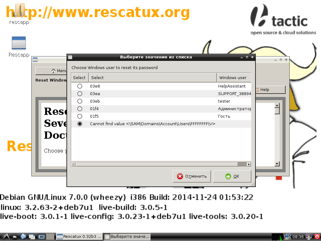Сброс пароля Windows и восстановление загрузчика GRUB с помощью Rescatux